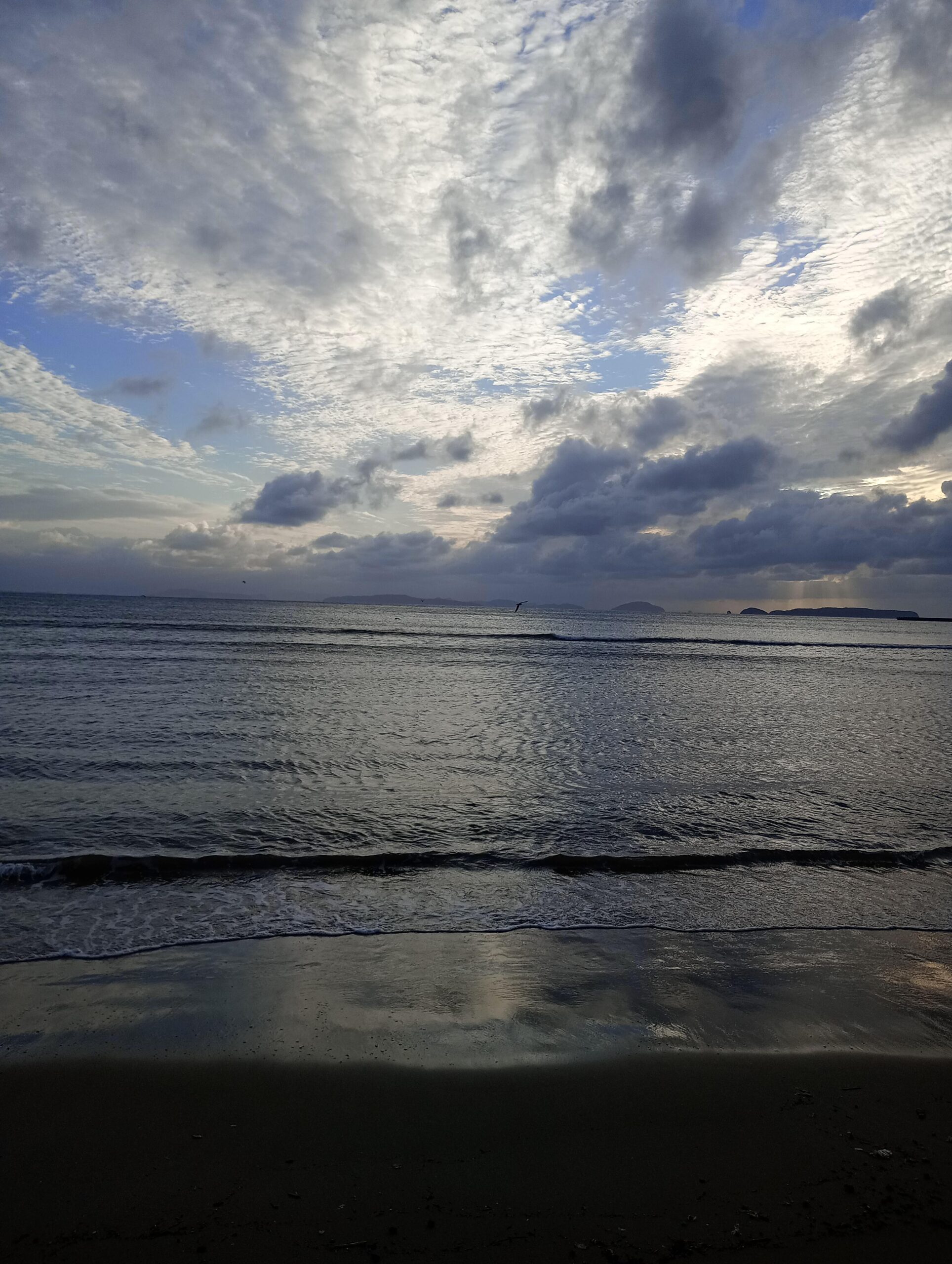 写真は、暑さが和らいで散歩に出た津屋崎浜で、カモメが何羽も飛来しているのを発見し、撮った一枚。庭先にはジョウビタキも訪れはじめました。季節は着実に動いておりますね。