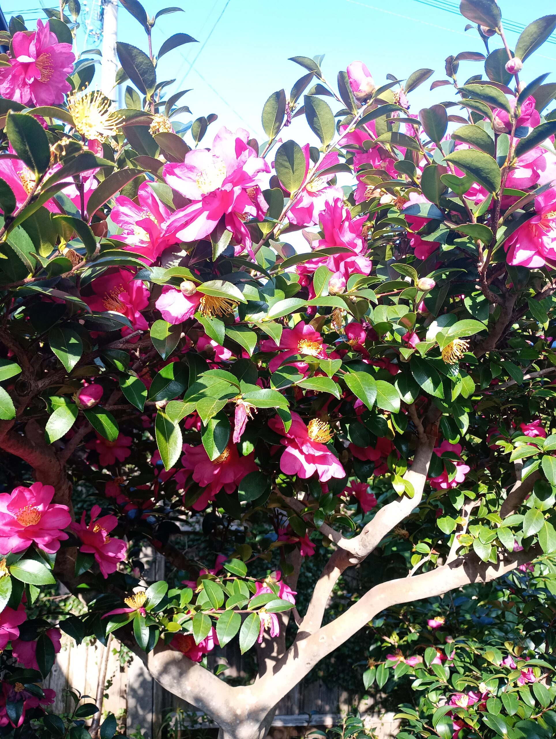 早くもサザンカが満開です―花祭窯の睦月(むつき)の庭。