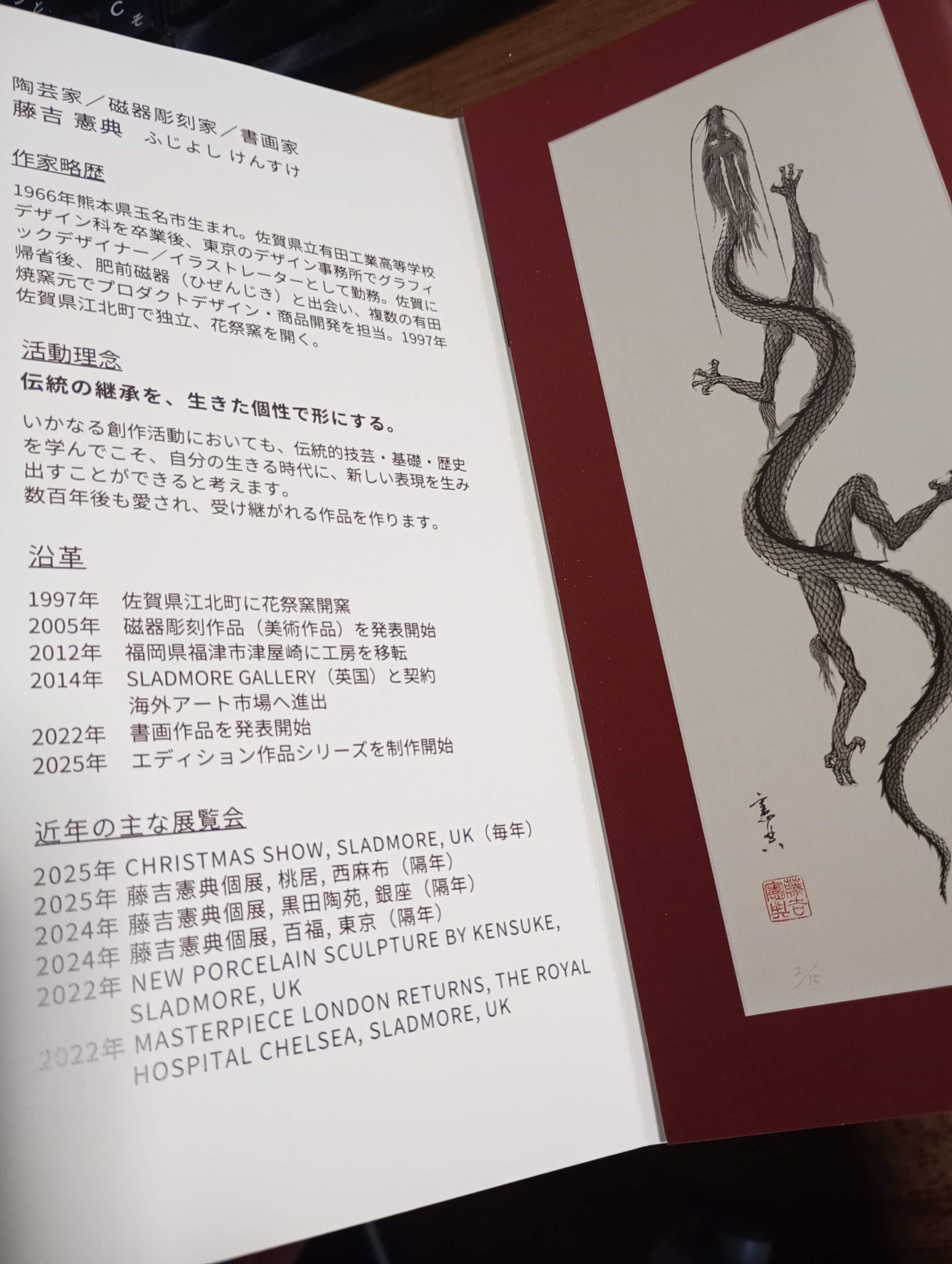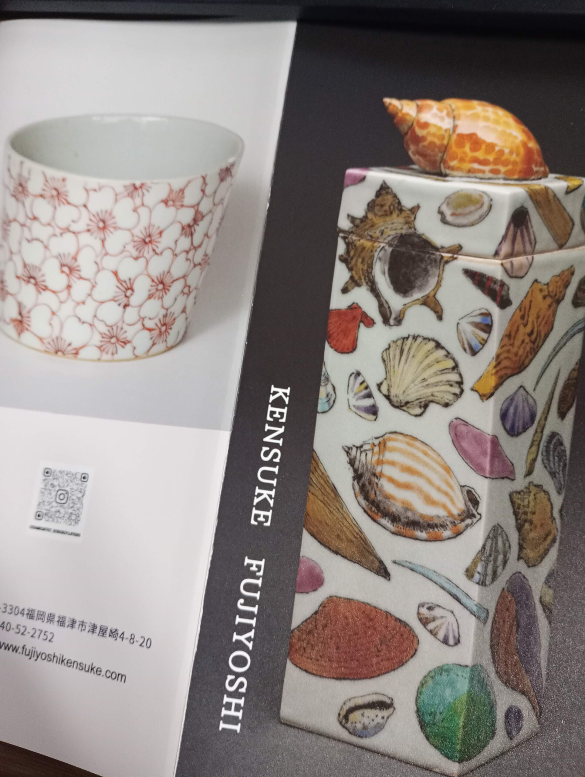 作家紹介の簡易パンフレットです。前回制作したのが、たしか2024年でしたので、約2年ぶり。A4サイズの用紙を三つ折りにしたコンパクトなものです。今回はCanvaでのデザイン制作で、いまだかつてなく短時間で仕上げることができたと思います。助かりますね。毎回「どの子を表紙に使おうかな」を選ぶのが楽しみのひとつ。今回は久しぶりに貝の陶箱を載せてみました。