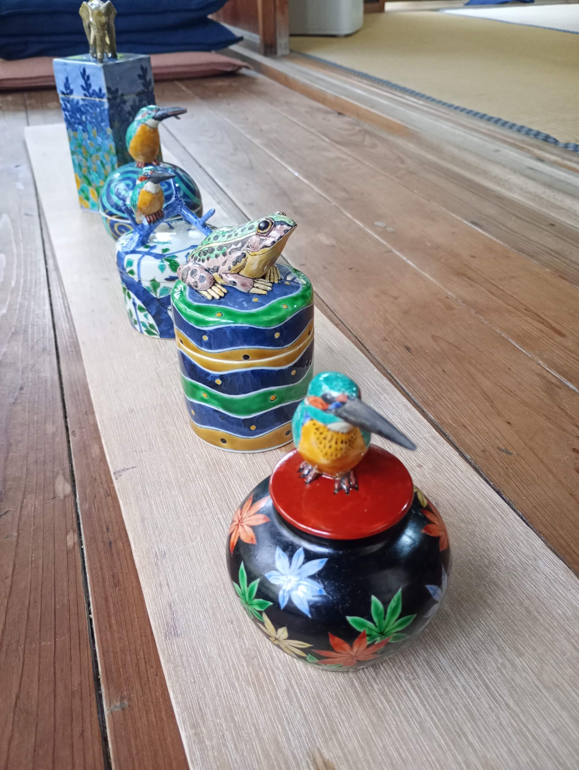赤絵窯があがるたびに、完成品がひとつふたつと増えていく様子を見ることができるのは、近くで仕事をしている者の特権です。新しい作品に出合えるこのワクワク感は、何年経っても変わりません。という間に今朝も、新顔が出てきました^^